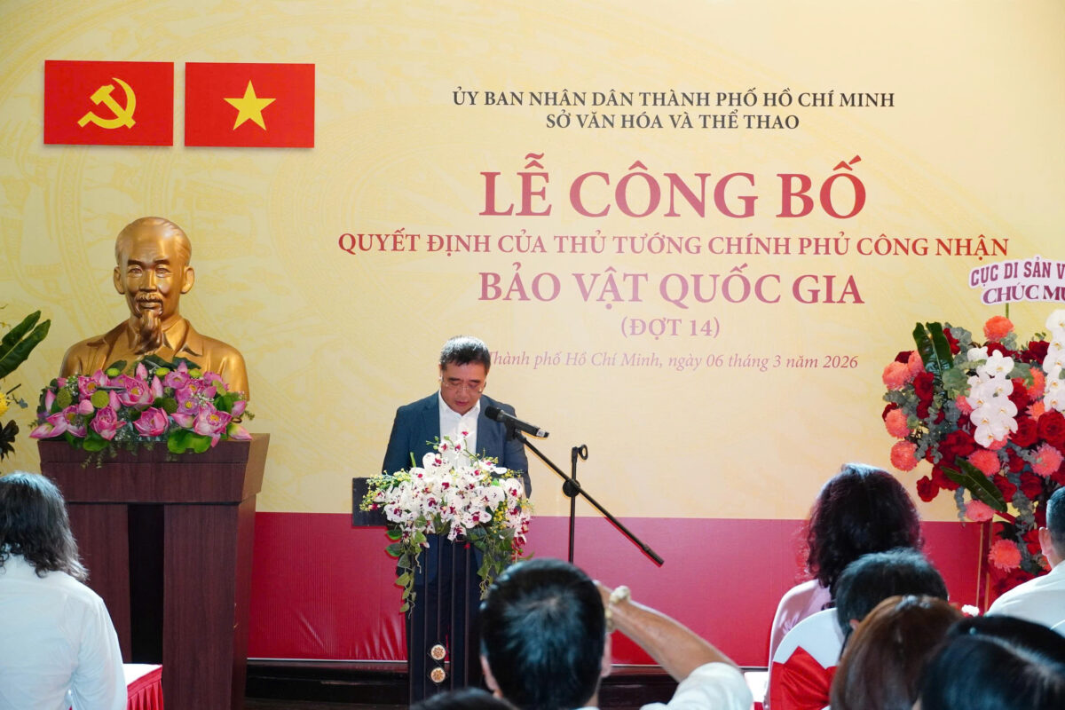 Sáng ngày 06/03/2026, tại Bảo tàng Thành phố Hồ Chí Minh, Sở Văn hóa và Thể thao Thành phố Hồ Chí Minh tổ chức Lễ công bố Quyết định của Thủ tướng Chính phủ công nhận: Bát bồng gốm văn hóa Hoa Lộc và Bộ tượng gốm men nhiều màu Tam quan Đại đế là Bảo vật Quốc gia đợt 14.